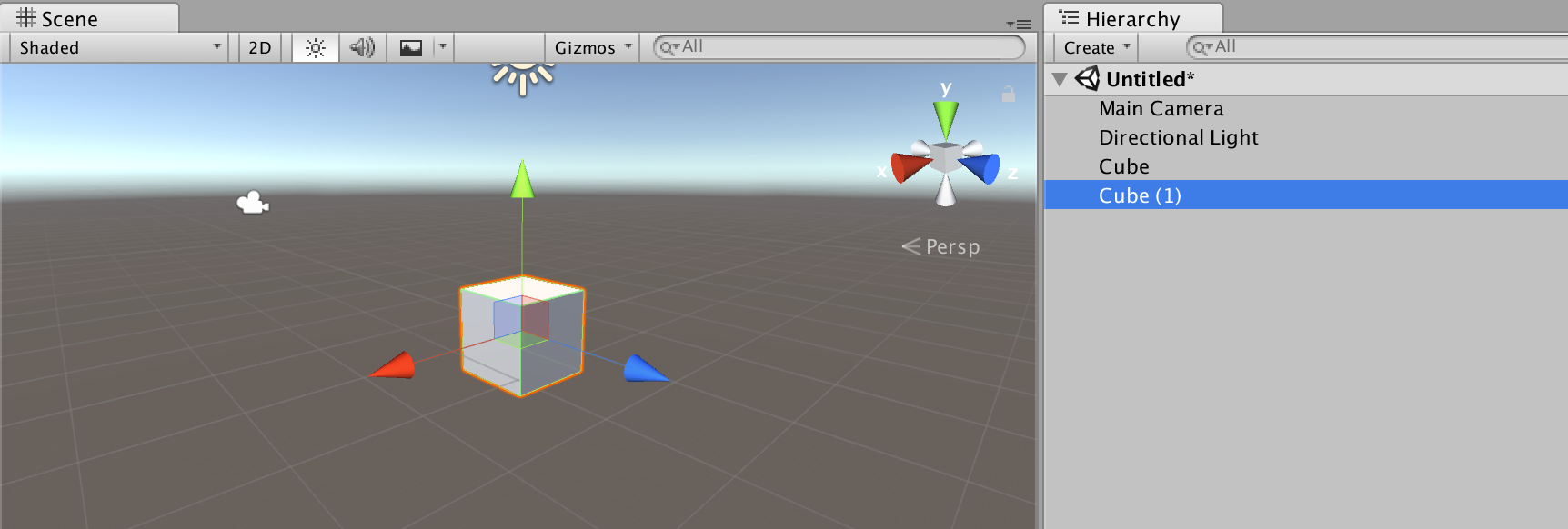 配置したオブジェクトはシーンビューにも追加されています。 ツールバーの左端のツールを選択して、オブジェクトの位置や角度、形状などを変化させる事ができますので動かしてみましょう。