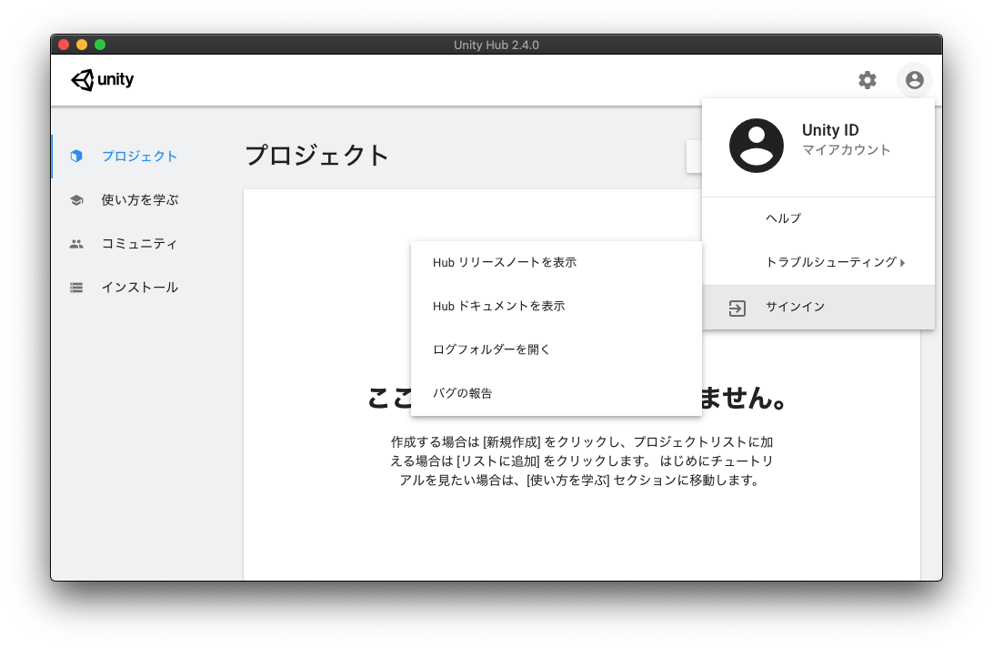 Unity IDの作成とサインイン