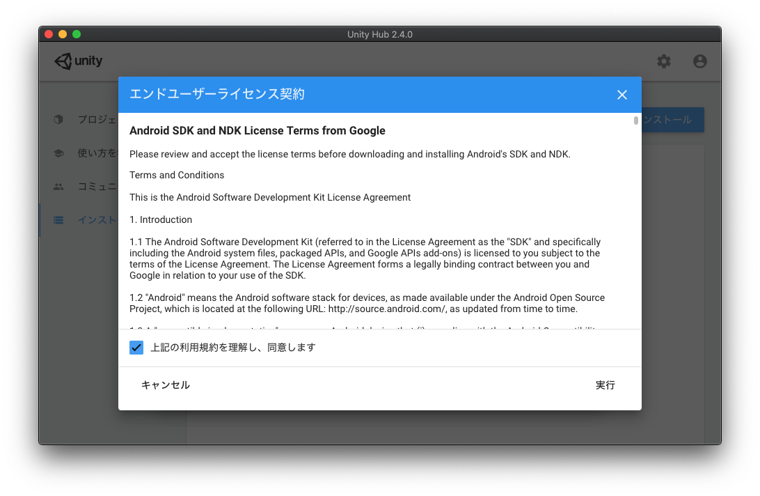 最後にライセンスに同意したらインストールが始まります。